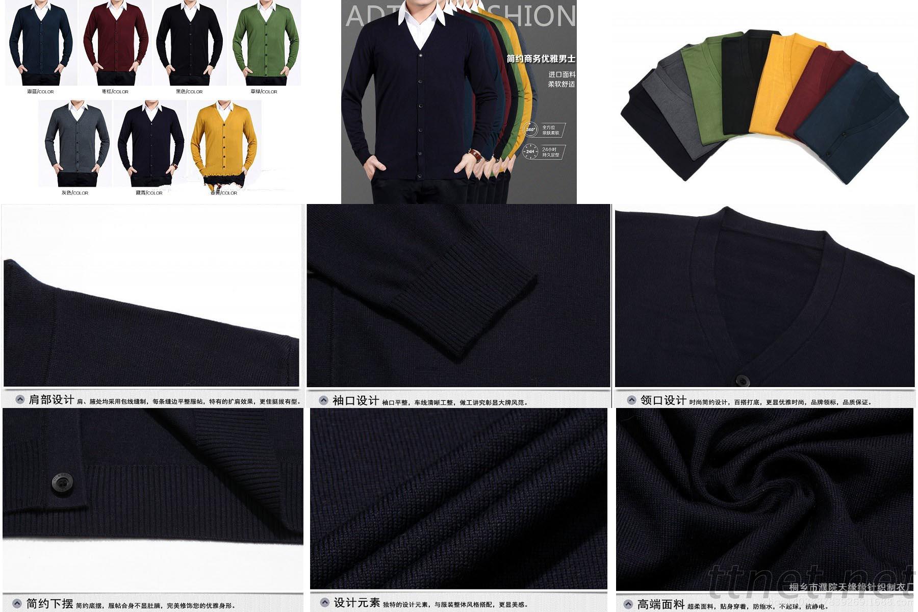 天緣108-男士V領開襟毛衣 (若訂製品約40天工作天) 產品價格: $880元 產品尺寸: S - 3L 產品顏色: 如圖,黃色沒貨了 產品質料: 天絲20% 羊毛30% 超細纎維50% (可選擇材質) 產品屬性: 各色多用途夾克背心,款式種類多樣,備有現貨,歡迎訂製。 . 可代印或電繡logo文字及圖案。 貿易資訊:可採取電匯或貨到收款方式付訖,已配合過之客戶亦收受短期支票。